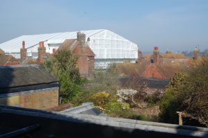 Jane writes: “From left to right you can just see the Landgate and St Mary’s, obscured a bit by The George Hotel’s covering, and in front is the school and an empty car park” but what she doesn’t mention is the magnificent wisteria on the left of the photo. Green fingers anyone!