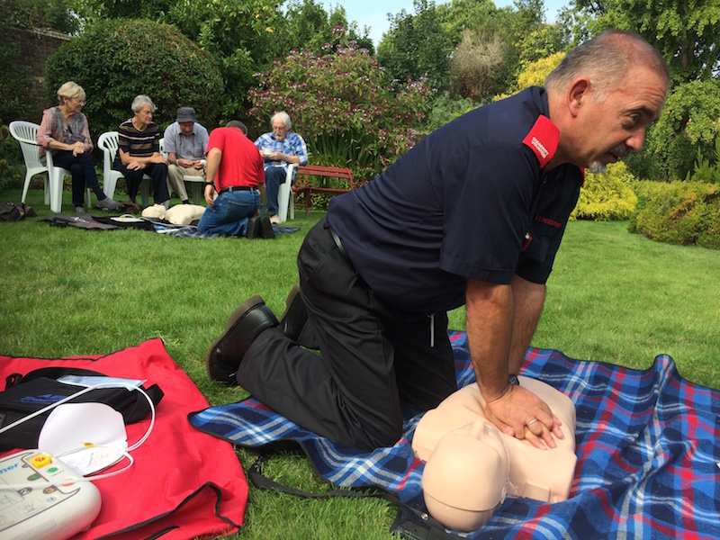 The August bank holiday in Rye wasn’t all about jazz and blues. On Saturday August 26 there was an open invitation to the delightful garden of 11 High Street to meet volunteers from Rother Responders and East Sussex Fire and Rescue Service who gave a demonstration on how to resuscitate people who have stopped breathing by using an automated external defibrillator (AED).