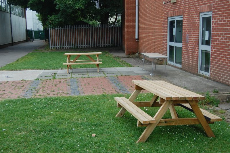 We decided to invest in some picnic benches for the students to use during break and lunch to enjoy the warmer weather and relax with their friends. To our horror we discovered that we could only afford one picnic bench made from concrete. After much searching, we found a great local supplier who was able to make us eight benches at a bargain price as they were made from recycled wood which had originally been a skate board ramp! This not only meant that they were strong and sturdy but were also within our price range and should be able to last for several years, so many thanks to Tech1 carpentry.