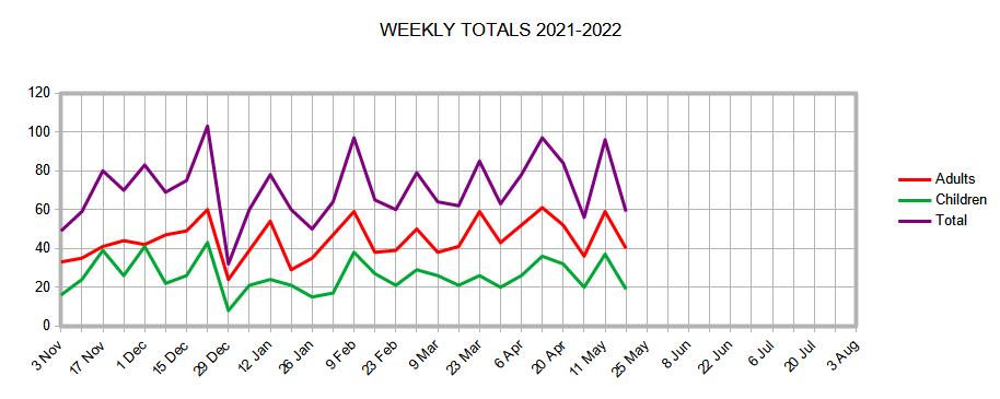 We are surprised, to a certain extent, not to have seen a leap in demand for food over the past couple of months. It’s a little puzzling as to why this hasn’t happened. Perhaps there will be a spike in demand later when fuel bills start to hit. Attendance numbers remain pretty constant too – it’s a shifting population with different people each week but the numbers remain consistent.