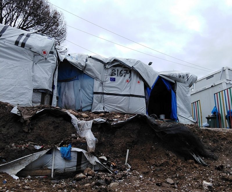 These circumstances were exacerbated by the fact that a bus should have been come along every half hour and we were expecting to wait ten minutes but it didn’t turn up and so the wait was forty minutes. I must admit that had there been a taxi visible I’d have been sorely tempted to take it but there wasn’t, so eventually a very large and very wet group of people crowded onto the bus. However, we were returning to a comfortable and dry room, we were not living in a crowded tent or portacabin and anyway we were only in Lesbos for a limited time so really we had nothing much to complain about.