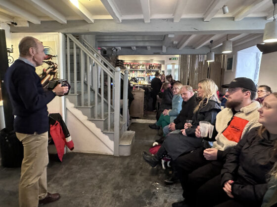 Martin Bruce, founder of Round Rye Bay Singers in Rye Harbour, was asked to sing on the Saturday. The narrow streets were filled with people jostling for a place at the venues. All the cafés, hotels and pubs taking part were filled to rafters and everyone joined in the choruses, fuelled by the local ales and ciders.