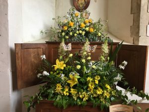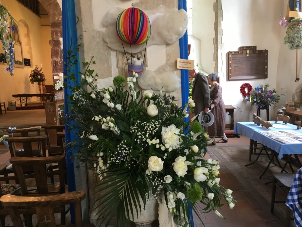 The Flower Festival team, led by Deidre Bull, filled the church with scent and beauty, in an imaginative and colourful display. From an idea by Angela Brassleay, the theme was “In the Sky”, so there was thunder and lightning, fireworks, flight and feathers, a very clever interpretation of the constellations, one could go on and on!