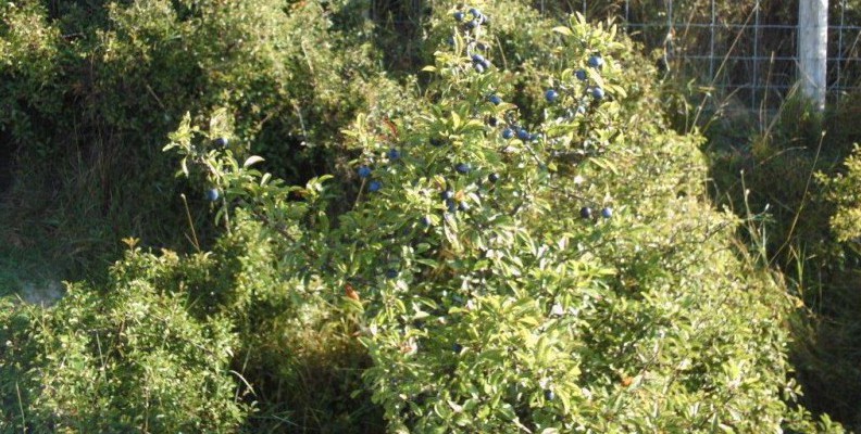 White flowers appear on short stalks before the leaves in March and April, either singularly or in pairs. Once pollinated by insects, the flowers develop into blue-black fruits measuring 1.5cm across. Blackthorn is a spiny and densely branched shrub. Mature trees can grow to a height of around 6m – 7m, and live for up to 100 years. The dark brown bark is smooth, and its twigs form straight side shoots which develop into thorns. The slightly wrinkled leaves are oval, toothed, pointed at the tip and tapered at the base. Blackthorns are mainly found in hedgerows, quite often along the roadside.