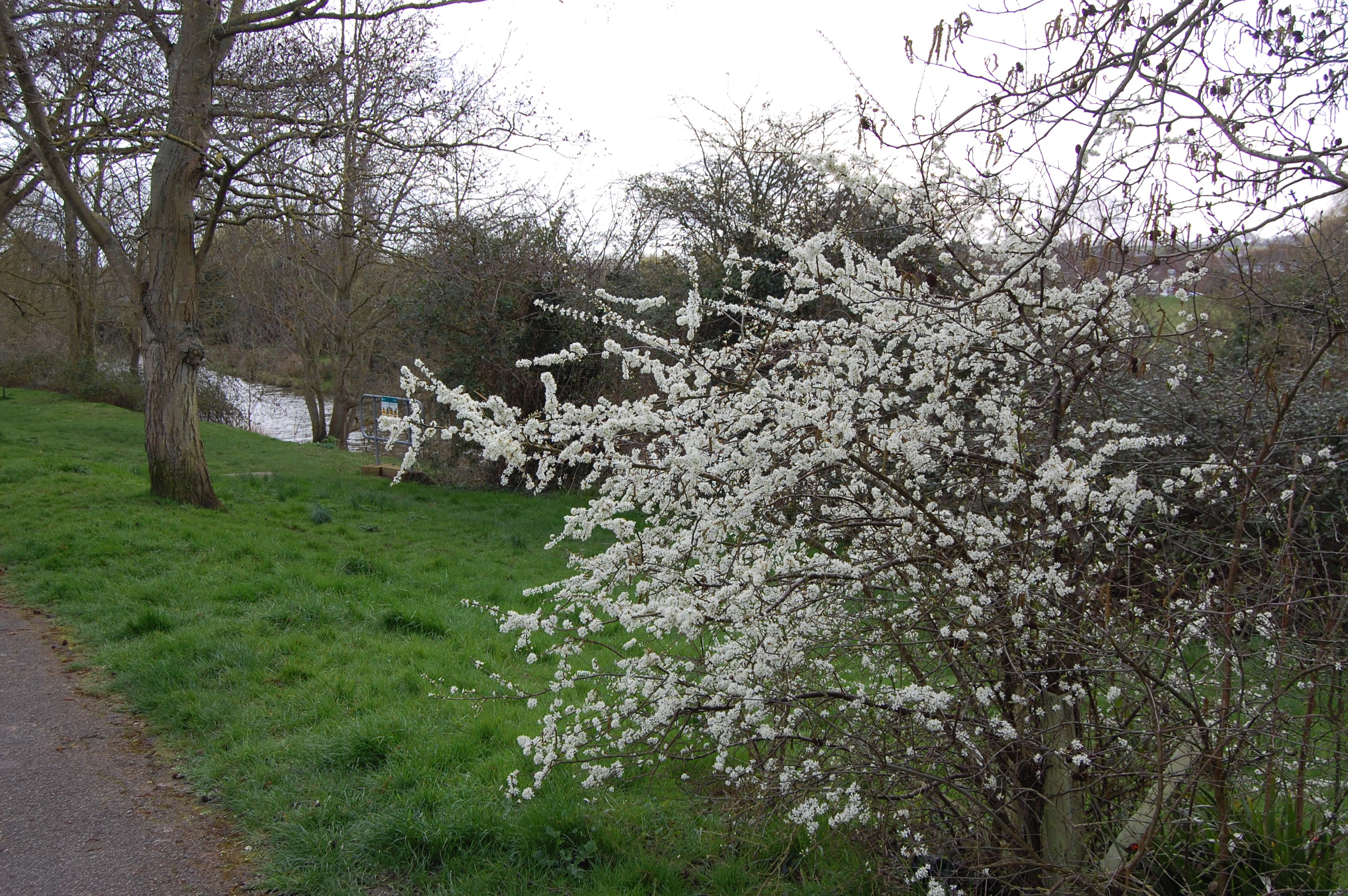 Looking for signs of spring, I had noticed a blackthorn out in all its glory beside the River Tillingham, so my walk took me this week from Love Lane past the allotments for a special photo-shoot.