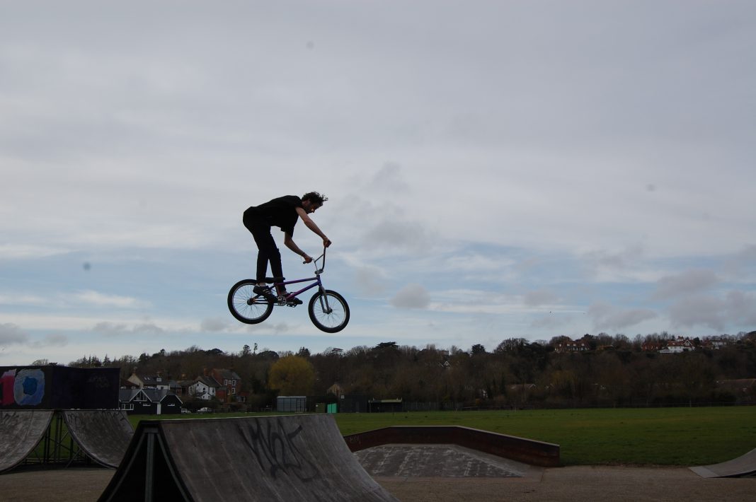Then, in a roundabout way, my route led me to the BMX skateboard park on the Cricket Salts, where I was stopped in my tracks. A young man was performing incredible stunts on his bicycle (see top photo), such that I had never seen even in the circus.