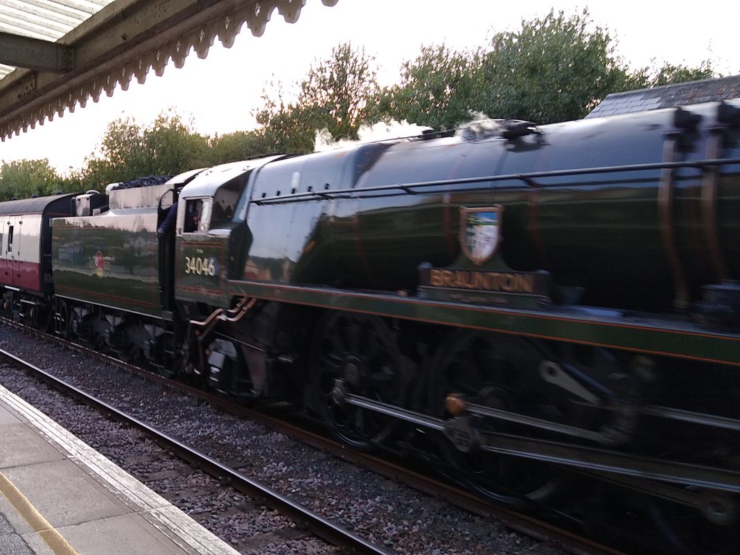 Braunton is a West Country class engine, named after the north Devon village. Built in 1946 for Southern Rail at the Brighton rail works she was originally numbered 21C146 but was re-numbered 34046 in 1949 and rebuilt in 1959. The locomotive was one of the engines used to haul the Royal train. Following withdrawal from service in 1965 Braunton languished in a scrapyard until she was fully restored, returning to steam passenger service in 2008. You can see a clip of the train passing through Winchelsea (filmed by David Merriman) below.