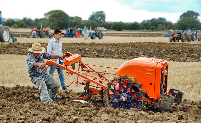 “‘trash” (weeds, grass, and stubble) control. Over 70 entries contested the nine classes with a range of machinery representing a journey through farming history. Vintage Ransomes, Fords and Fergusons may have dominated the furrows, but horses, steam ploughs and manual implements ensured all aspects of ploughing heritage were on display.
