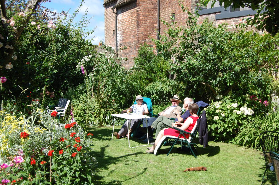 Last Sunday afternoon, July 3, members and guests of Rye Conservation Society enjoyed an afternoon in the sun, chatting with friends and taking tea in the garden of Little Orchard House in West Street. The lawn and shrubs were looking their best: “It’s all down to Andy” said hostess Niki Stuart, referring to her husband, as she wielded a teapot benevolently. Jen Tomkinson dispensed home-made cakes, strawberry scones and that scrumptious millionaire’s shortbread; it was all very civilised and enjoyable.