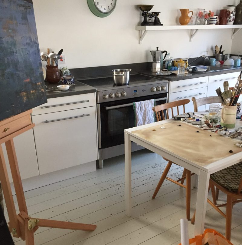 Encouraged by the results of High Water, I have since painted a few figurative works and am now stretching up canvases ready for more landscapes. The down side to painting is all the kit that goes with it. Easels, canvases and bags of paint paraphernalia are now distributed throughout our little house and oily turpentine scents the air, but I am smitten and now reconnected with painting, starting to think that I might need a studio too…. ooh and maybe a gallery to hang all the results?