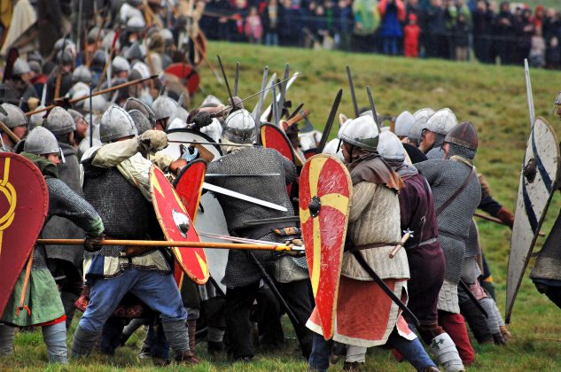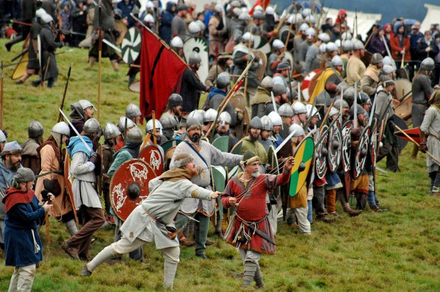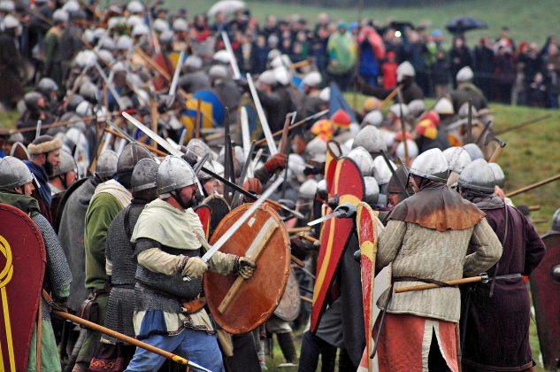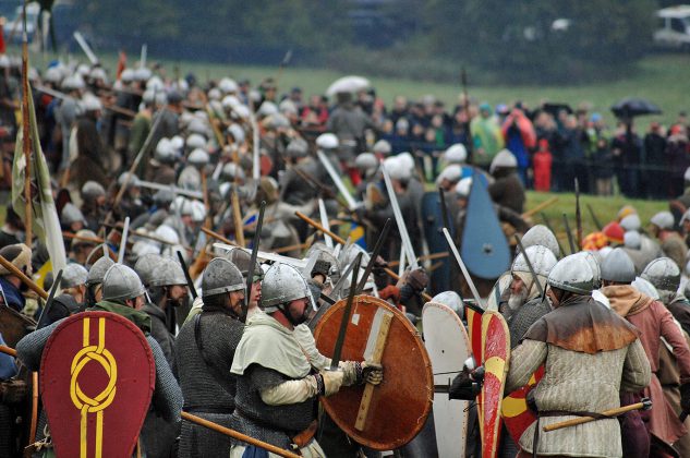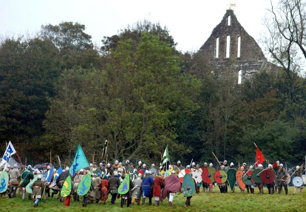In the shadow of Battle Abbey over 600 battle-scarred veterans from the world of medieval re-enactment braved the rain and each other to recreate that stirring memory from 1066AD when the Normans achieved in just one day, with swords and a cunning tactical plan, what the European Union has been trying unsuccessfully to achieve with spiteful words for the past three years – the conquest and subjugation of Anglo-Saxons.