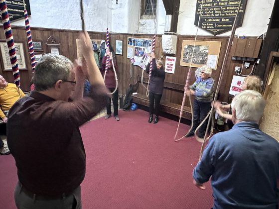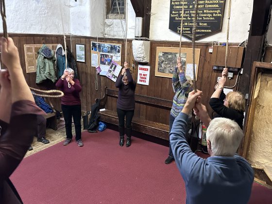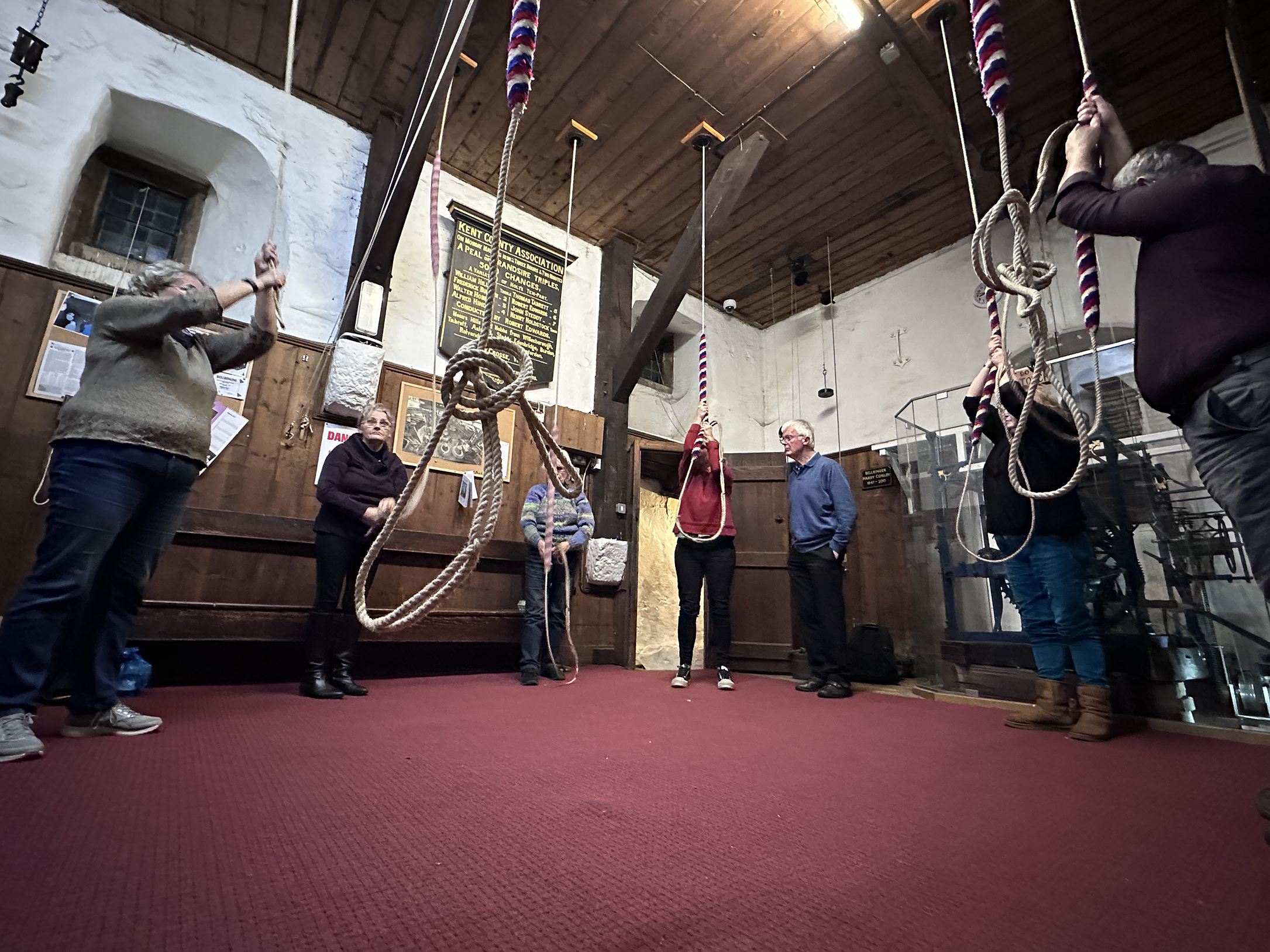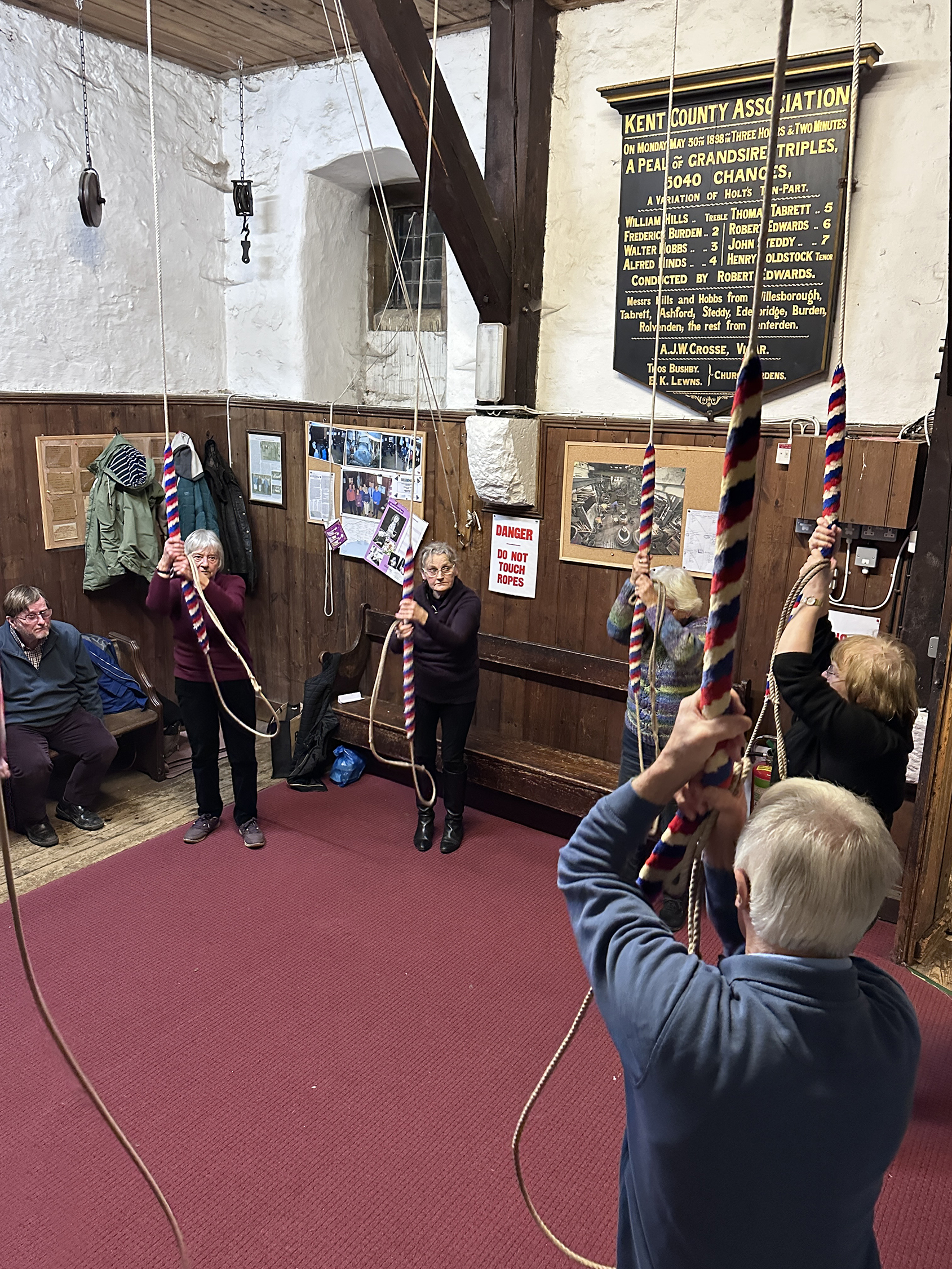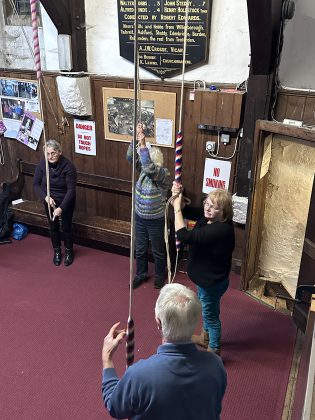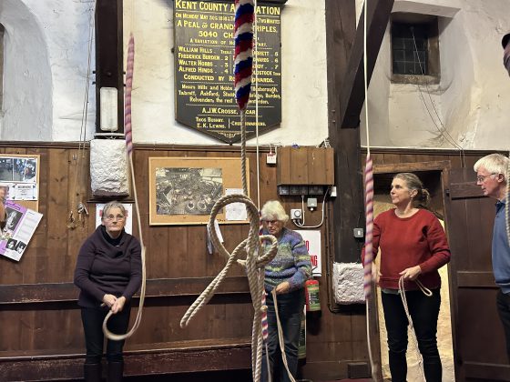 On Thursday evening between 7pm and 9pm you can hear the bells of St Mary’s, Rye ringing out across the town. Thursday is bellringing practice and a group of men and women from all backgrounds come together to learn the ropes. The group welcomes newcomers and on Thursday November 5 there were three newbies from Iden, two ladies from Lydd and Simon, who has been ringing for a very long time: his father rang before him and was also church warden. Frank comes from Stone and is teaching the learners.