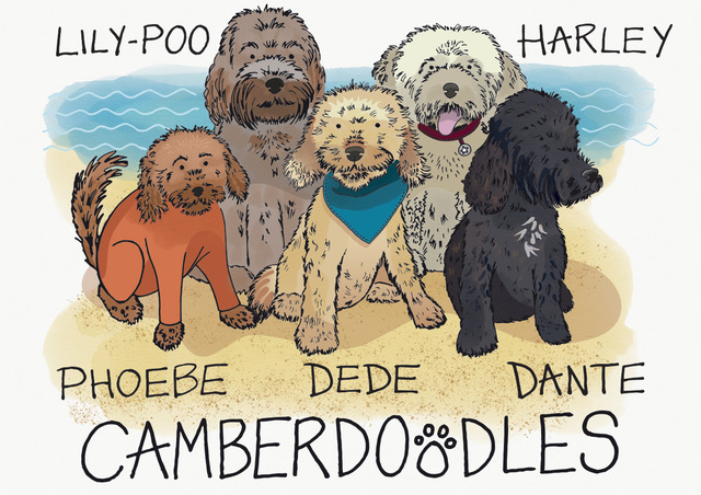 There are five Camber doodles who are best forever friends. They never squabble and only say kind things to each other. They never forget each others’ birthdays or to buy Christmas presents for each other.