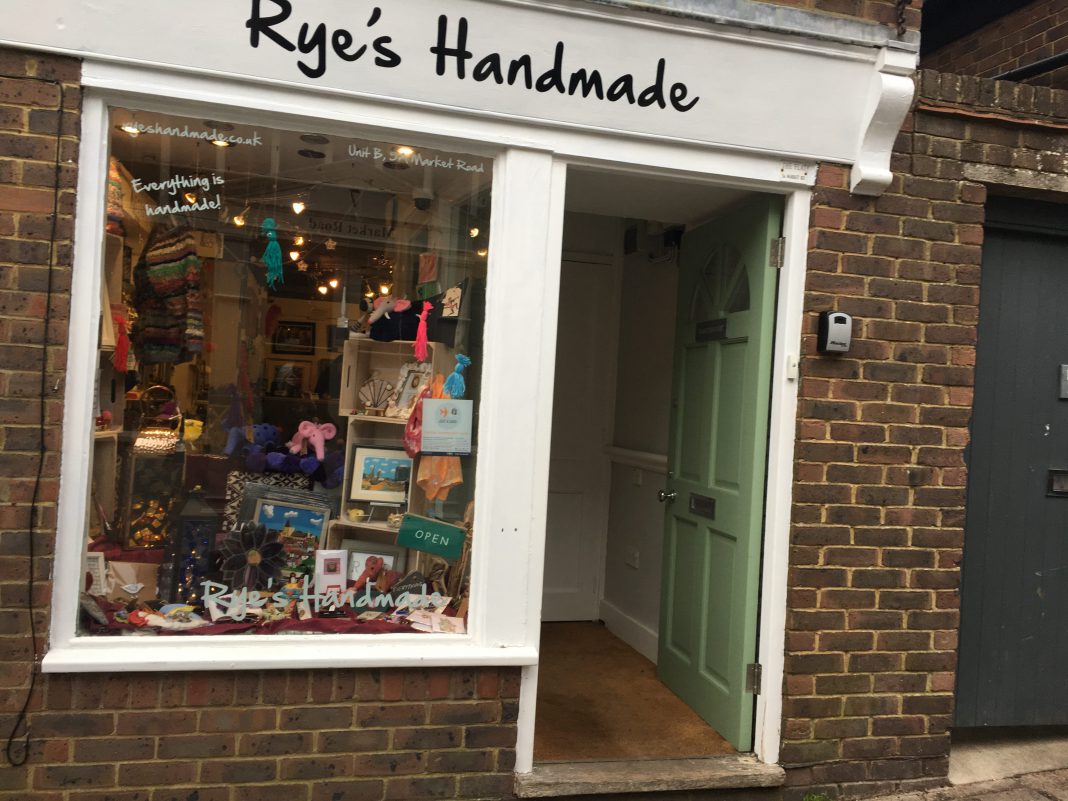 Half way up Market Road is a small shop called “Rye’s Handmade’” with a window full of local crafts, brought together by Susan Morris. Susan is a stained glass artist herself and thought up the idea of opening this little jewel of a shop to display and sell all kinds of handmade items. The whole idea was to make the business as simple as possible for the local craft makers, many of whom are recognisable from local fairs