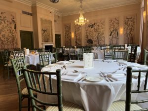 Upstairs on the first floor, the three function rooms are a fabulous re-vamp success. Small functions can use a lovely intimate Long Room at the front of the hotel. Larger parties can enjoy the spectacular newly decorated ballroom. Its historic chandeliers have been replaced with beautiful copies. I just can’t help wondering why a giant disco ball is also hanging up there with them.