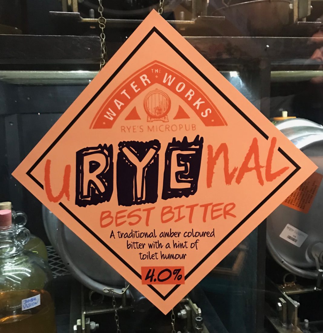 [Editor’s note : When you’ve got a pub that was once a public convenience you can guess there’ll be some jokes to be told – and they won’t all be a flash in the pan, particularly where home brewed bitter is concerned. And Rye’s very latest beer has a name to enjoy. So read on]