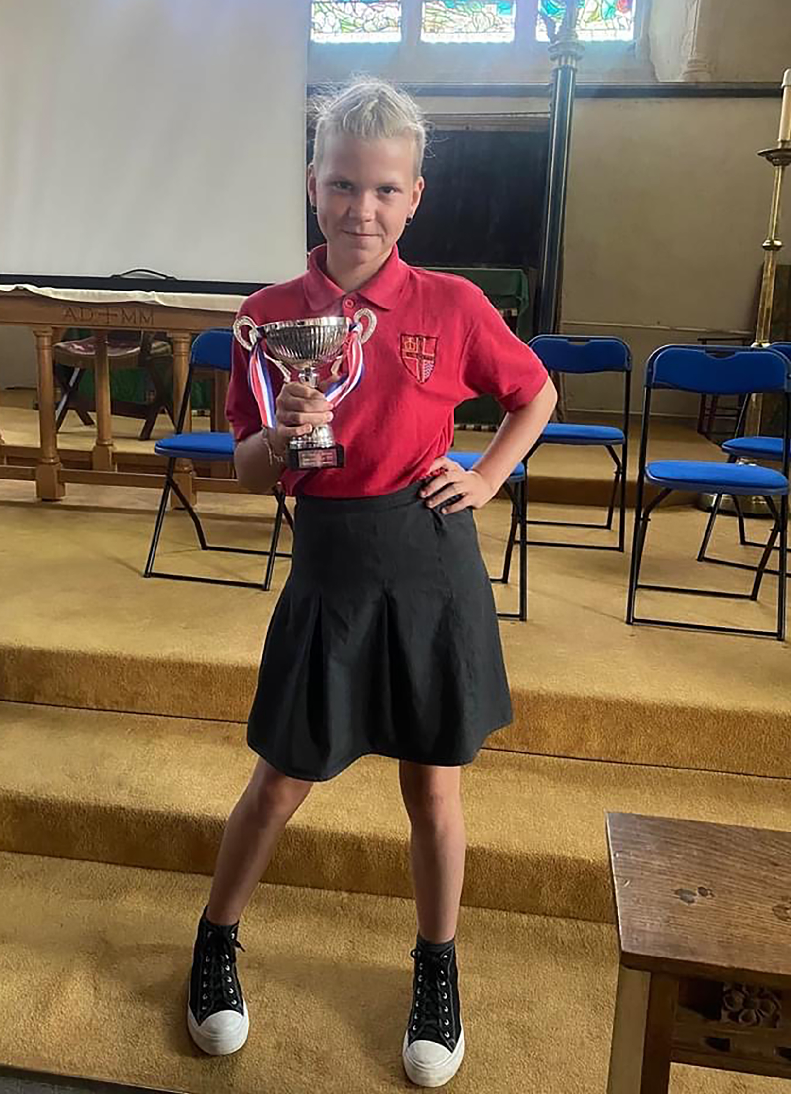 Skye left primary school last week and heads now to a much bigger school with different challenges. She attended St Thomas’s Winchelsea and enjoyed her time there. She is not an “academic” child but is sporty and generous of spirit. Her school recognises that everyone has something to offer and Skye was presented with the Admirable Achievement Cup which is given by the governors to a child in year 6 who has been kind, caring, generous and selfless throughout their whole time at school.