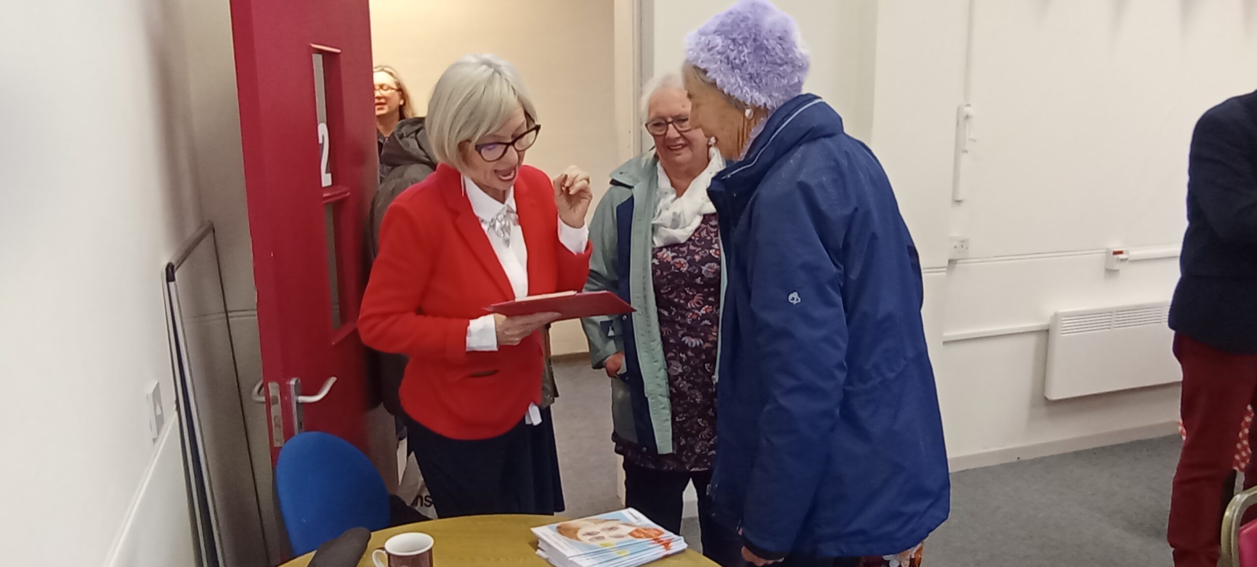 “I would like to publicly thank the volunteers for decorating the room, meeting and greeting, making fresh tea and coffee, cutting cakes, washing up and providing many ‘goody bags’.
