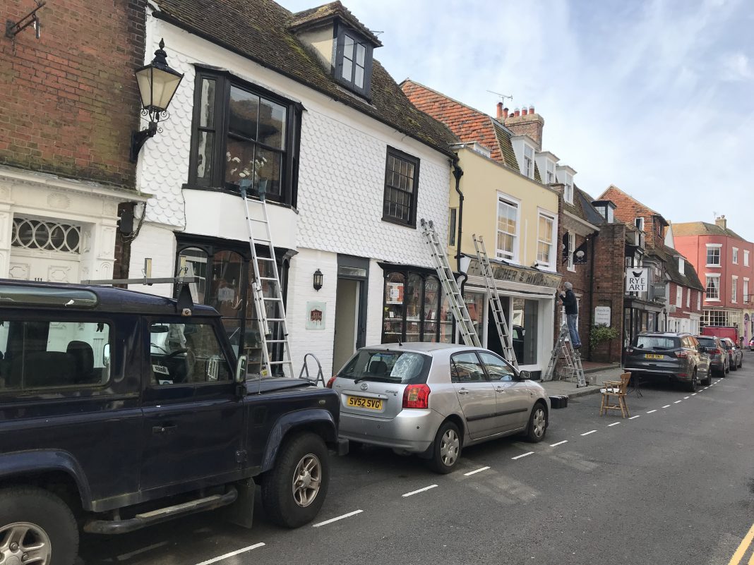 The Devil in Rye has also had the decorators in, and Rye Chocolates and Soldiers of Rye have had ladders up too. The scaffold overcoat wrapped around the George Hotel now offers belated protection from the elements, but work seems to have paused temporarily (not surprisingly) as have the roof repairs to the Monastery as well.