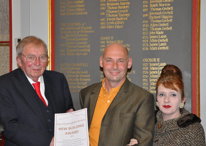 The award for a new building was given to Mr and Mrs Paul Osbourne for their new house Hawthornedene on Military Road. As I, as vice-chairman, pointed out in announcing the award, the Society’s remit extends to the setting of Rye and the Marsh, and it was felt that the new house contributed to both. In accepting the award Paul Osbourne described the trials and tribulations that they went through in building the house, which was on the site of a derelict bungalow.