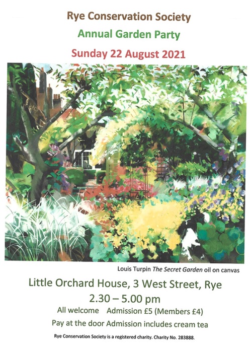Finally to end on a happy note, we at the Society hope as many as possible can attend our annual Garden Party in Little Orchard House on Sunday August 22. This will be the first opportunity in many months for members, or anyone interested in becoming a member, to meet up and discuss all the issues that are facing the town. The Garden Party poster features artwork by local artist, Louis Turpin. There will be the usual excellent scones, teas and coffees. And at the Garden Party we plan to present our 2021 Conservation Society Awards. Do come along.