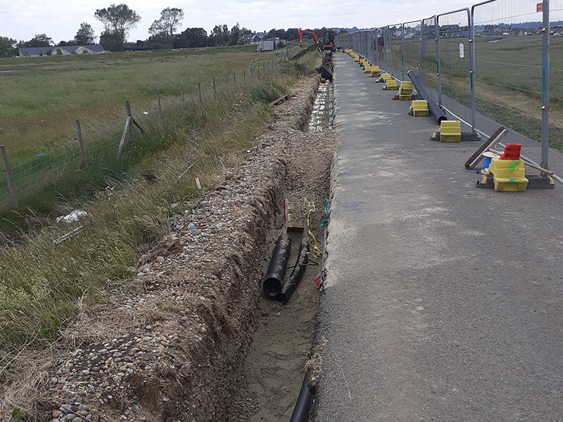 Sussex Wildlife Trust is pleased to say that the service trench for the Rye Harbour Discovery Centre is progressing well. Baxall will shortly be moving into phase two, and this section is expected to take six weeks.