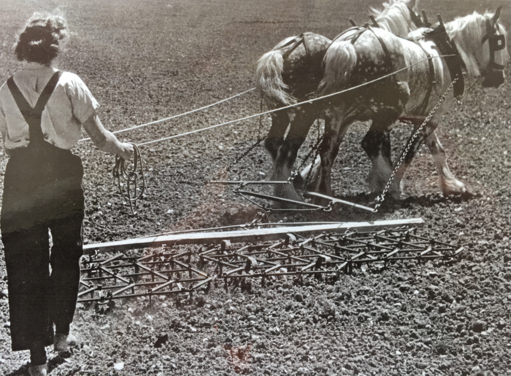 Occasionally the ordinary public asked to volunteer on the farms for a short time as they saw it as a cheap holiday in the country. Nearly 200,000 land girls worked for the WLA from 1939 to 1950s replacing farm workers who had gone to war. Many friendships were formed amongst the women, some married farmers and many kept in touch. It was a special time for women to be counted and appreciated as strong and necessary help to keep the country going during the wars.