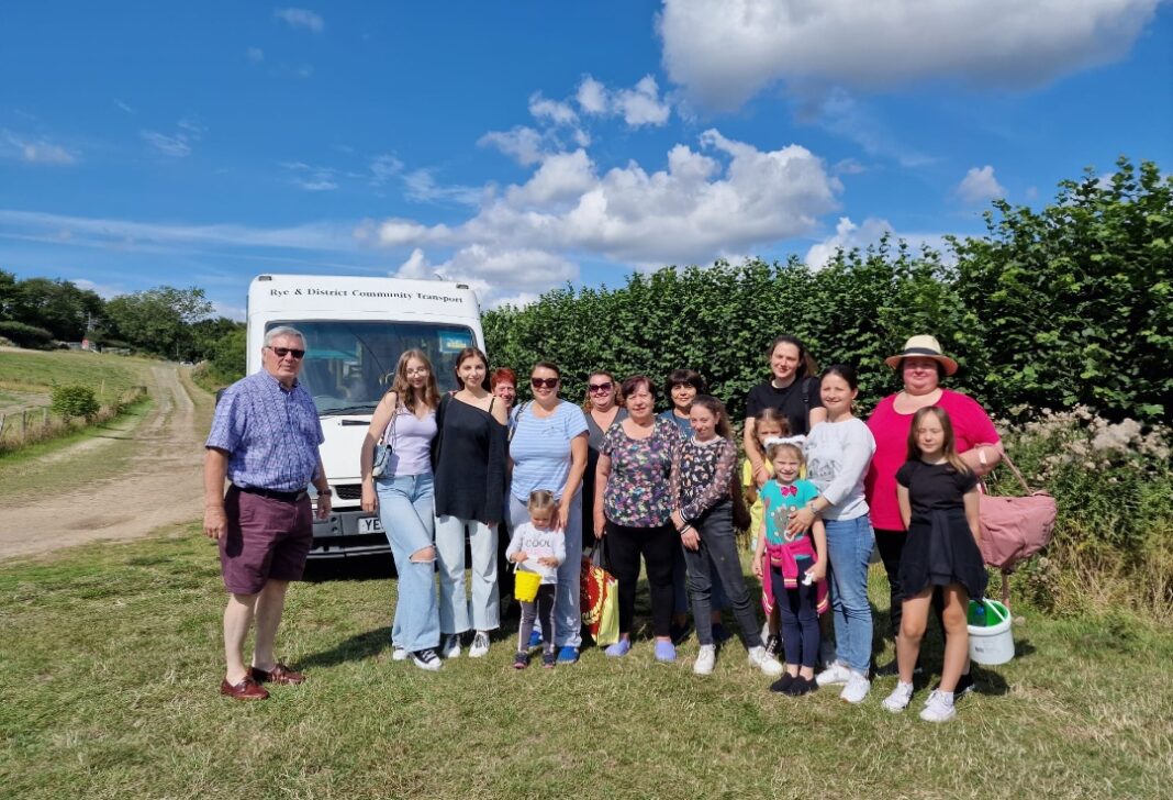 On Wednesday 26 July the Rye Hub (Homes for Ukraine) arranged for a group to travel to Tibbs Farm for a Pick Your Own experience. Although the season for some fruits is coming to an end, there were raspberries, strawberries and black/red currants. Tibbs Farm says that Pick Your Own is all about the experience of getting out and picking real food from a real farm. It quickly became clear that the Ukrainians did not not need any explanation of the option to ‘try before you buy’. There is nothing quite like eating food straight from the plant. The party was impressed by the home grown British produce in a safe, fun and beautiful setting.