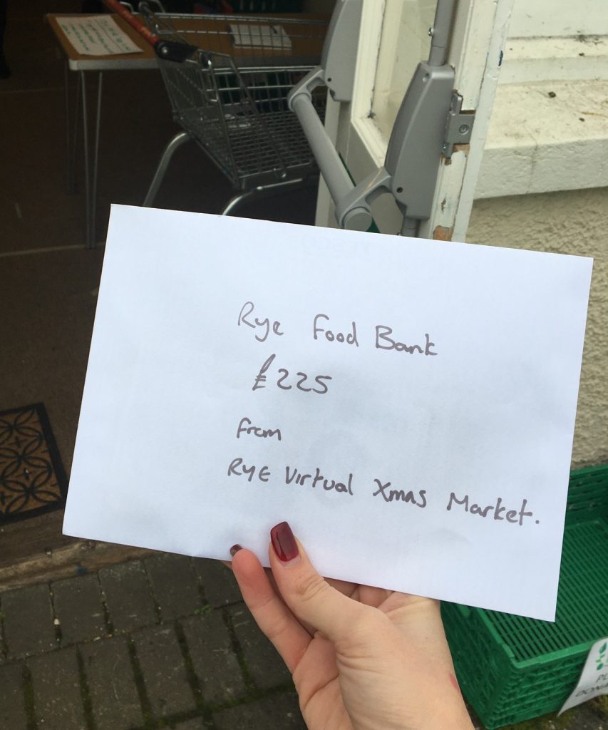 Delighted Christine Emson, of Rye Foodbank had this message for Jodie, stallholders and supporters of the group: “On behalf of Rye Food Bank I would like to say a huge thank you to everyone who took part in the virtual market, what a brilliant idea. Your generous contribution will help us make the Christmas parcel a little special for 35 to 40 families – that is approx 160 people who attend every week. Thank you all once again.”