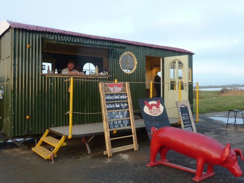 Located opposite the sea wall between Winchelsea Beach and Pett Level, the Red Pig food truck is a distinctive-looking cross between a gypsy caravan and an old railway carriage. Run by Andrew and Sharon Forbes Gower, the venue caters for all weathers. Sharon decides the menu, which usually changes every two months, and also bakes the fabulous cakes, while Andrew does the rest of the cooking.