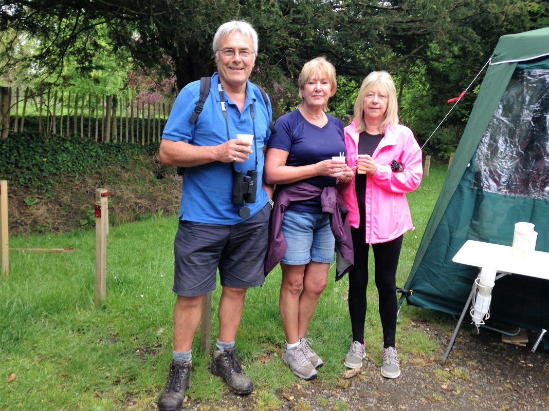Walkers said that the route was well signed, the whole walk very pleasant and the efforts of the stewards to manage the nettles really very successful. The weather was fitful, sunny and showery and so the route was rather muddy, but this did not put anyone off. The walkers were well kitted out for all weathers in any case, and some, like Neil and Oscar Sadler, do the walk every year.