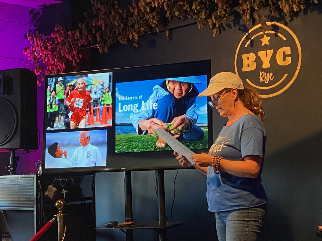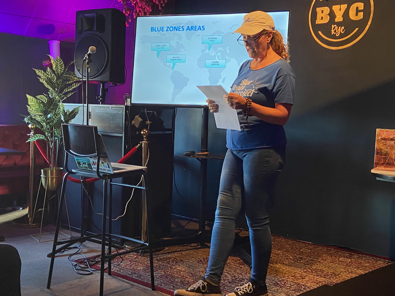 Well, maybe you can live to one hundred if you follow the advice handed out at a recent event in Rye’s Brewery Yard Club by life coach Dena Smith Ellis, pictured above.