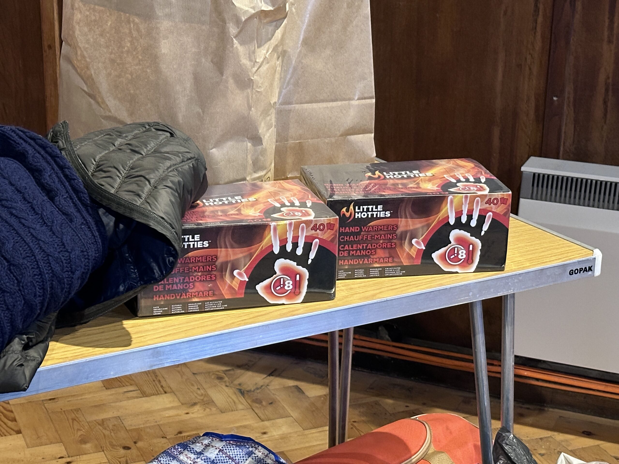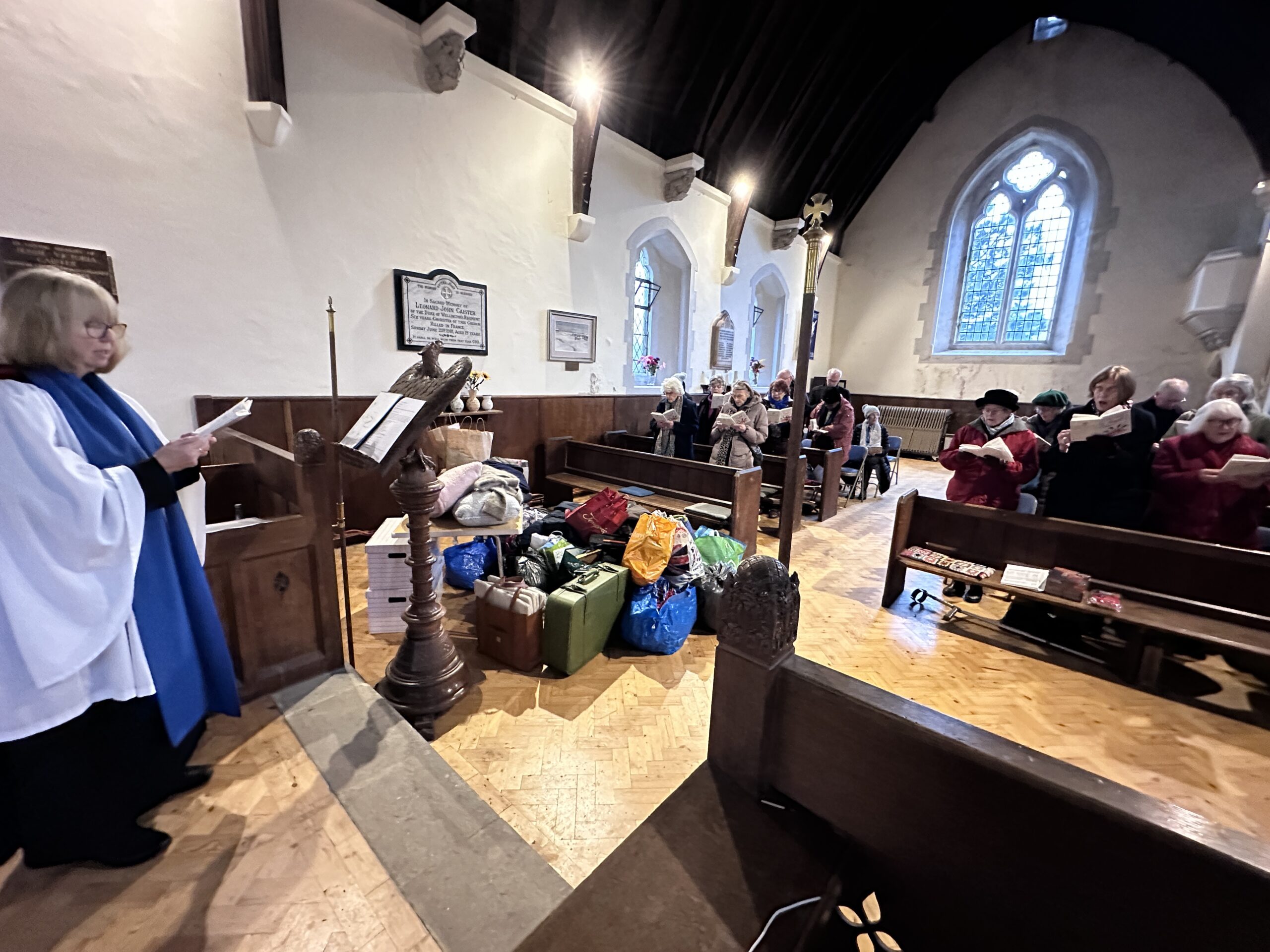 January had been so bitterly cold and miserable that it was decided to dedicate the service to warming up the homeless. The villagers and those in Rye were asked to donate warm clothing and this year the charity requested hand-warmers which could be purchased on the internet to help prevent frostbite. The congregation did not disappoint. People arrived armed with bags and boxes and soon the table and floor were filled to overflowing.