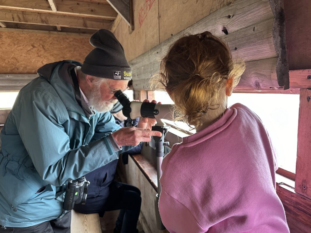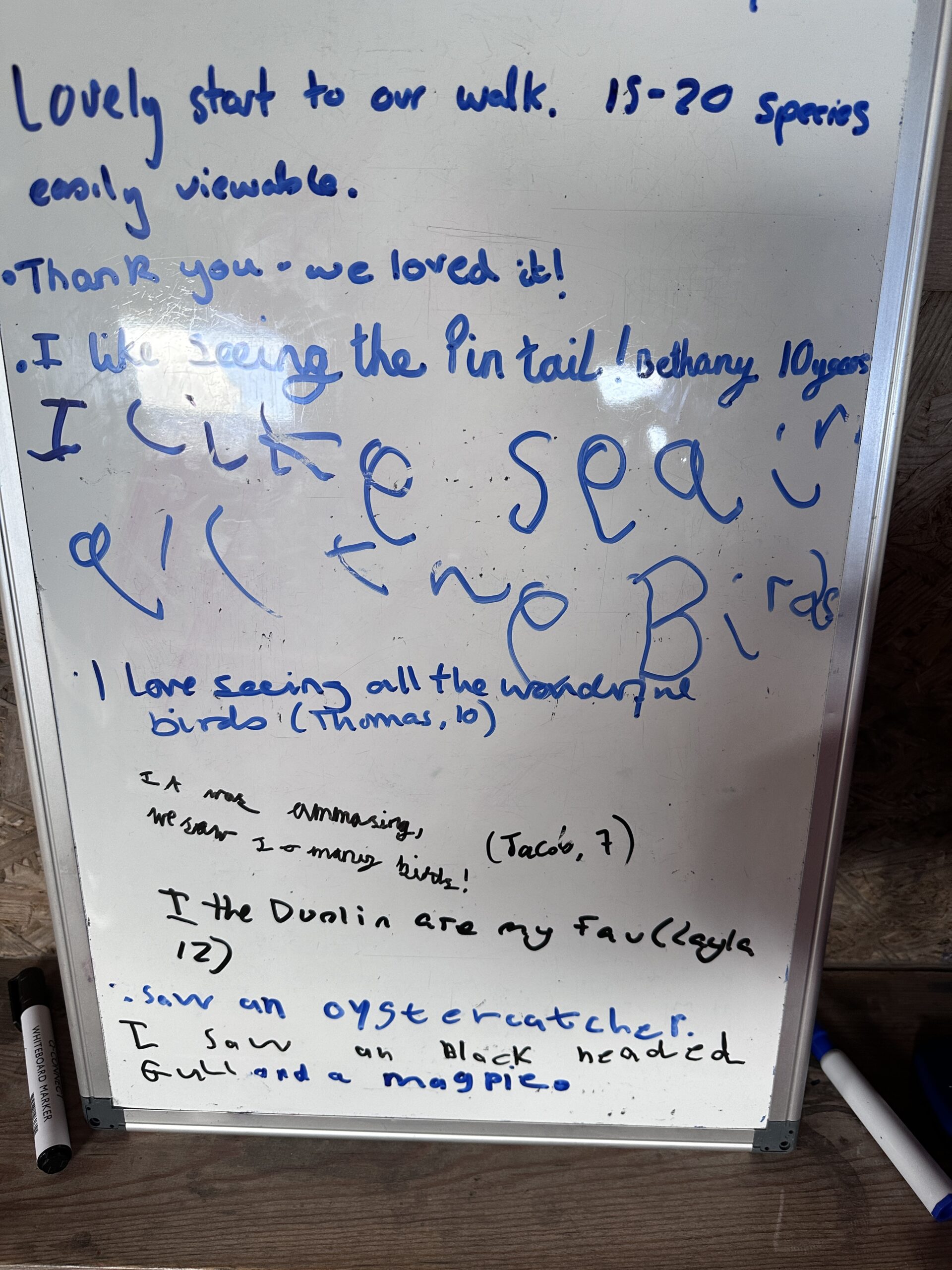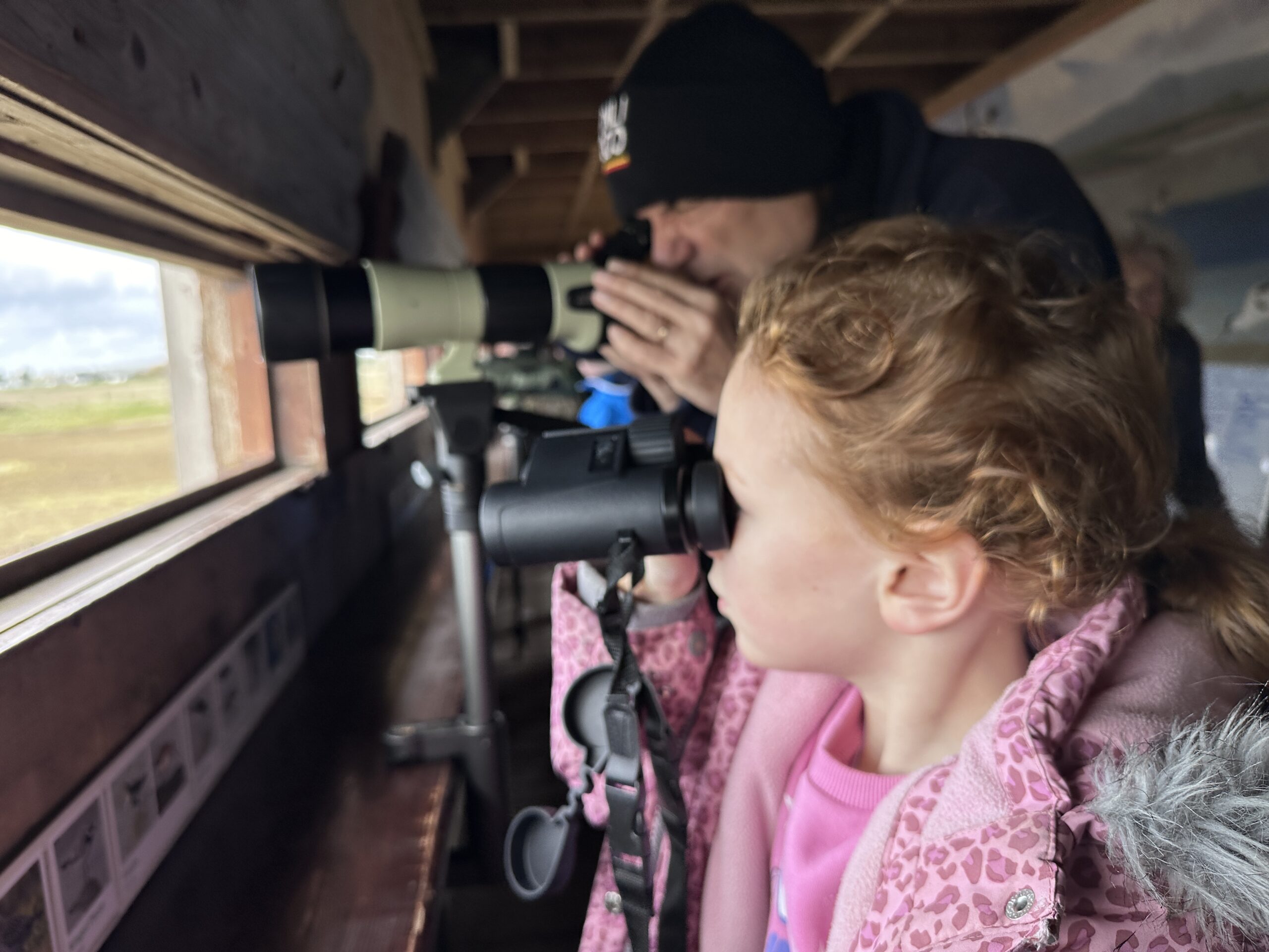 Two first-time visitors, Darcy and her grandpa, had a wonderful time. Darcy, aged five, was engaged from the offset and went with one of the guides to look through a very large telescope just outside the discovery centre, excitedly telling everyone what she could see. The two then went to Gooders Hide where she spotted oystercatchers, black-headed gulls and a magpie. She loved being able to write their names on the white board. The guides were kind, caring, knowledgeable and so patient with the youngsters who were keen to learn.