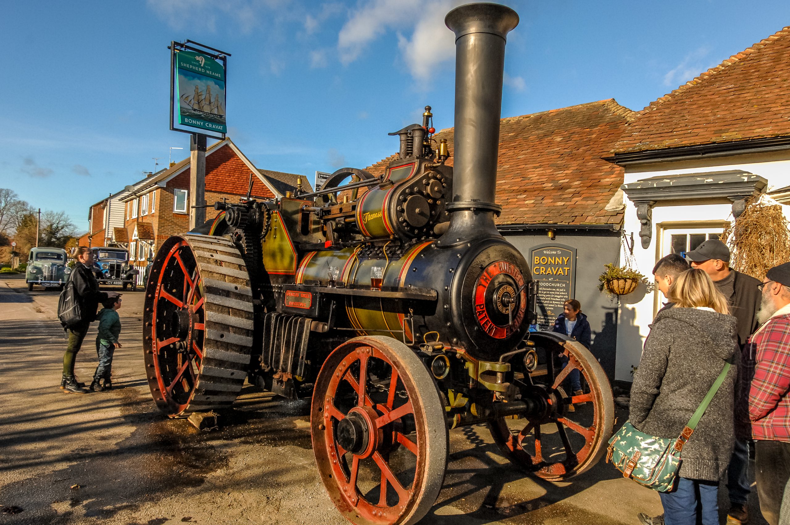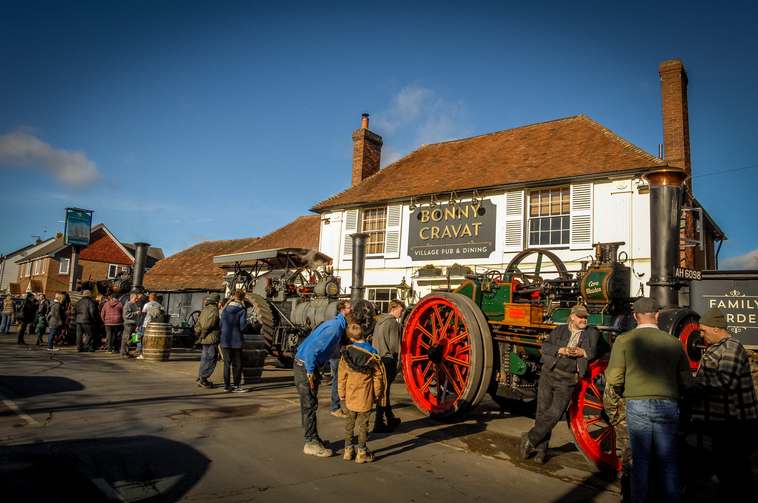 The Bonny Cravat pub in Woodchurch welcomed the world of steam, and many of its local supporters, for a pint and an impromptu get-together, as four traction engines dating from the turn of the last century, steamed into the village last Saturday.