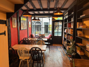 After the sudden passing of Michel, Sally felt a strong desire to “give back” to the community that had supported her family during their time of loss. This led her to transform Rye Old Books, a cherished local landmark, into the vibrant GROUNDED space. Sally’s architectural skills were key to the transformation, as she reused materials from past projects — paving slabs and bricks unearthed in the courtyard, wooden panels from the old bookshop (now serving as the coffee counter), and light fixtures and furniture repurposed from a recently closed local vegan café.