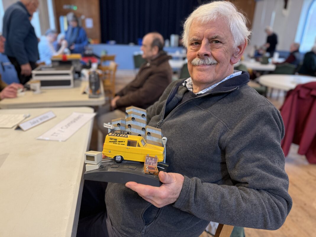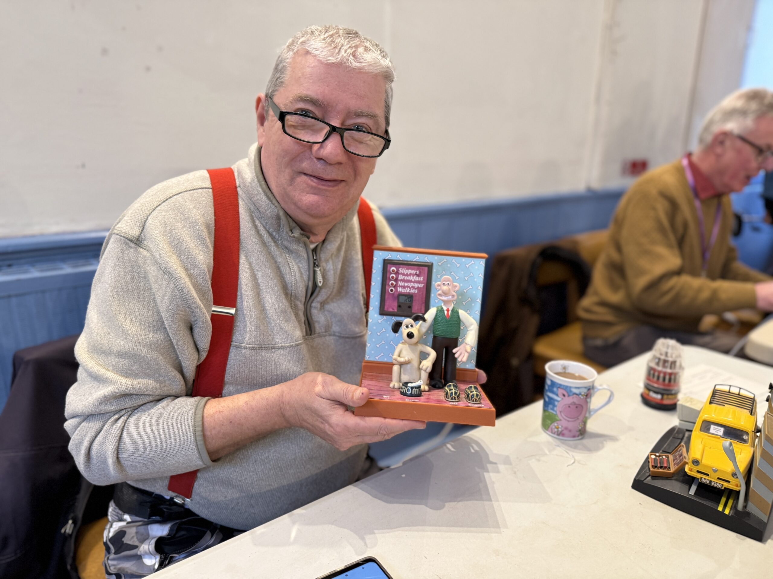 Whilst Jake Willis was assessing the problem with a Wallace and Gromit speaking and musical alarm clock, lots of people popped by and said: “I had one of those,” – nostalgia overload. Jake was also looking at Geoff’s Del Boy’s car (also an alarm clock) which needed a light to be fixed. Geoff was very proud of his mementos of his past and all the memories they evoked.