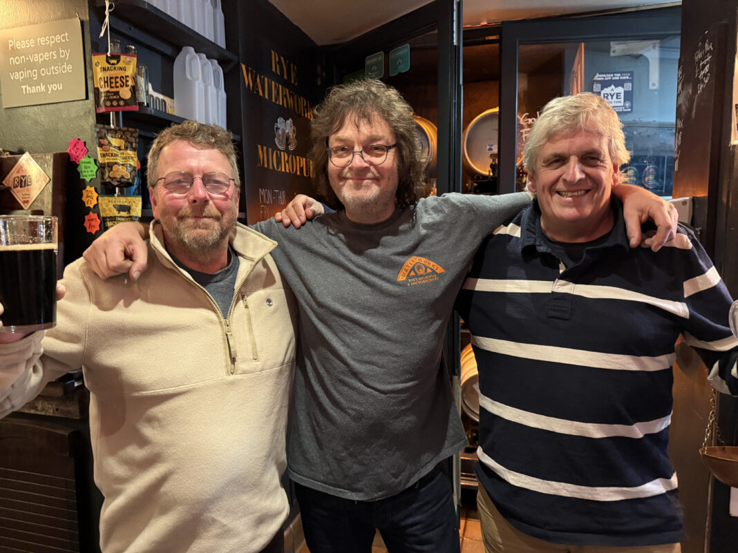 David is a wonderful, warm-hearted, dedicated worker, a friend to many and a perfect, if somewhat eccentric host. People travel miles to enjoy the atmosphere and of course the ales and the ciders. The Waterworks in Rye and the brewery on the hill outside Rye are always buzzing with punters having fun and the ambiance comes from the caring staff who understand their customers’ needs. David praised Tim for all his hard work and determination to produce the best ale. They are a winning team.