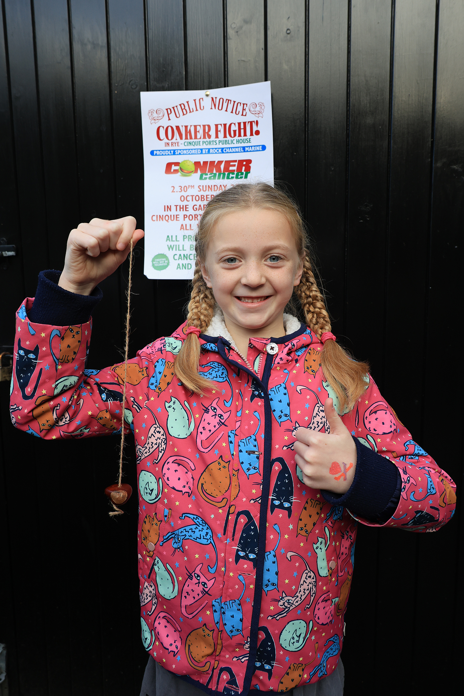 5 … 4 … 3 … 2 … 1 … conker! The first conker championship to be held in Rye was underway on a sunny Sunday afternoon at the Cinque Ports pub in Rye, its aim to raise funds to help conquer cancer.