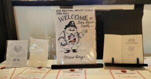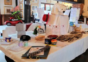Excitement grew as the evening progressed with the cuddly polar bear dog snuggler vying for most popular item against the delicious chocolate bonfire cake and Rye Fawkes. Not forgetting the wonderful collection of Pugwash sketches from the John Ryan estate.