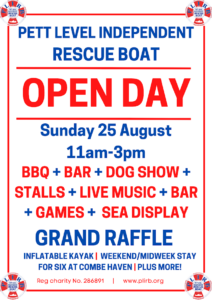 The biggest annual fundraiser for Pett Level Independent Rescue Boat takes place on Sunday August 25. The open day at the boathouse on Pett Level Road runs between 11am and 3pm.