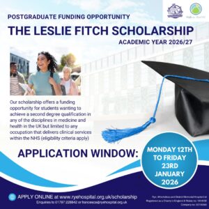 A spokesperson for the hospital said, “Rye, Winchelsea and District Memorial Hospital Ltd is pleased to offer the same scholarship opportunity to eligible candidates for study from September 2026. If you or someone you know would like to follow in Rebecca’s footsteps to embark on a second degree in any NHS clinical area, then please submit your application for the academic year 2026-27 when the window opens on Monday 12 January 2026.”