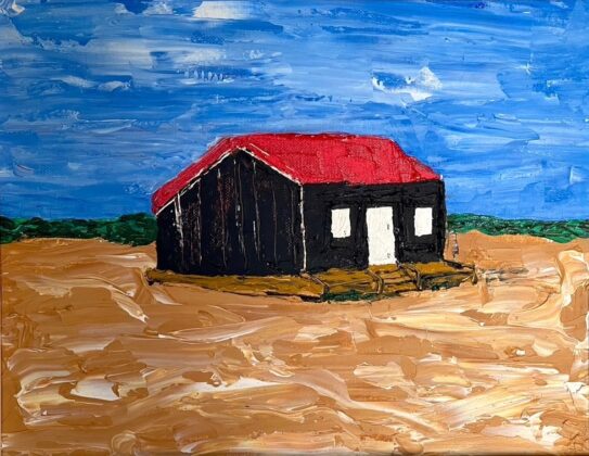 The exhibition run by the Tuesday Painters offer beautiful pieces in a range of prices as varied as the sort of work on show. Many of our artists are mindful that in August there are masses of tourists about, many on the hunt for a memento of their stay, so local scenes, especially of the ubiquitous Red Hut – why is it called that when it’s only the roof that’s red? – will grace the walls. Its proper name is Norton’s Hut, far less evocative.