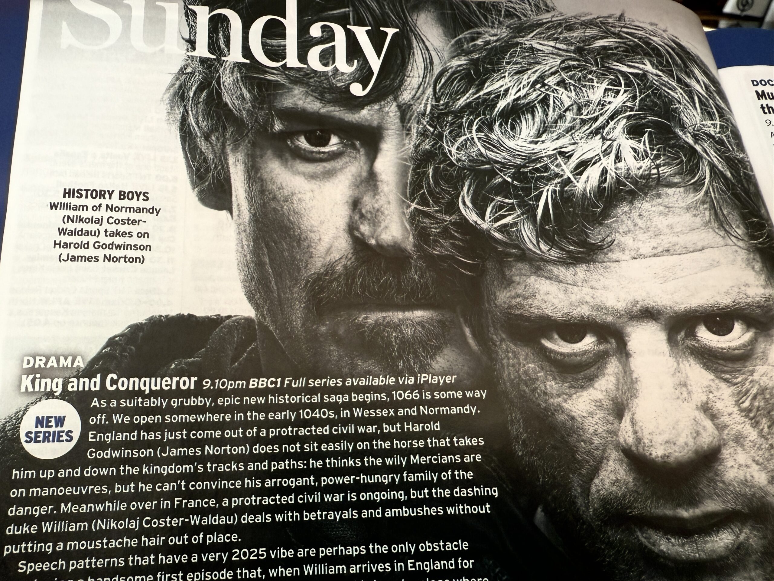 “It was an honour to be part of this epic tale and wonderful to share the retelling of this memorable moment in history. Obviously, it had extra significance for me living so close to Battle. I visited the Abbey and spoke with a guide there and got to see where my fictional son, King Harold (played by the wonderful James Norton) actually died. To see the hill where the battle took place was really moving.