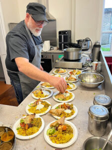 In the session, Robin demonstrated three energy-saving devices and how to get the best from each of them: electric pressure cooker, electric induction hob and air fryer. My memories of scary pressure cookers from the 1970s with a tendency to whistle or even explode were banished – modern pressure cookers are very safe! Robin explained that the pressure cooker uses 60% less energy than a gas or electric hob, yet can easily rustle up “one pot wonders” – as he demonstrated with a delicious pilau biriani recipe.