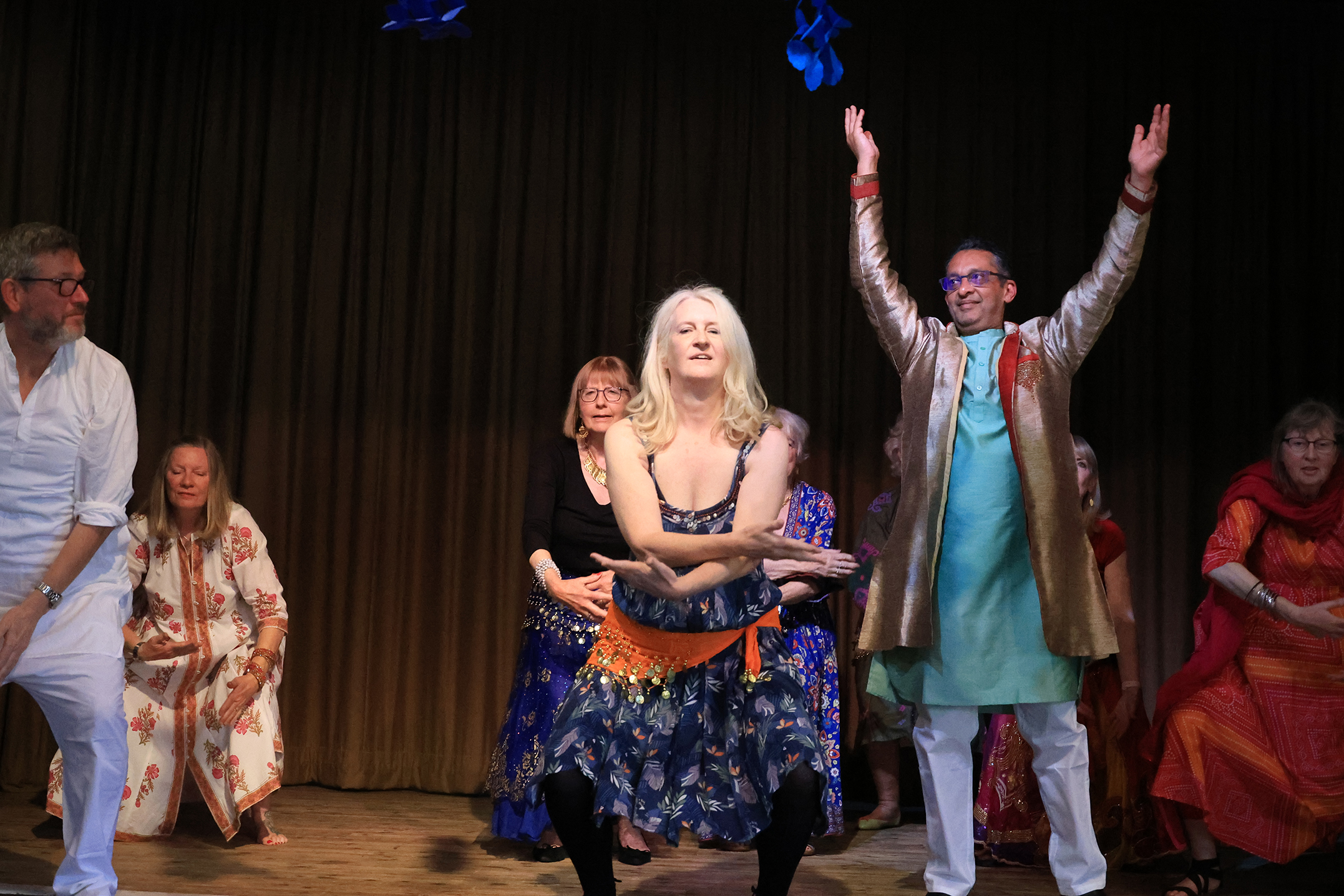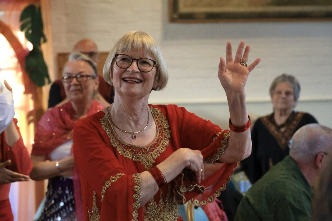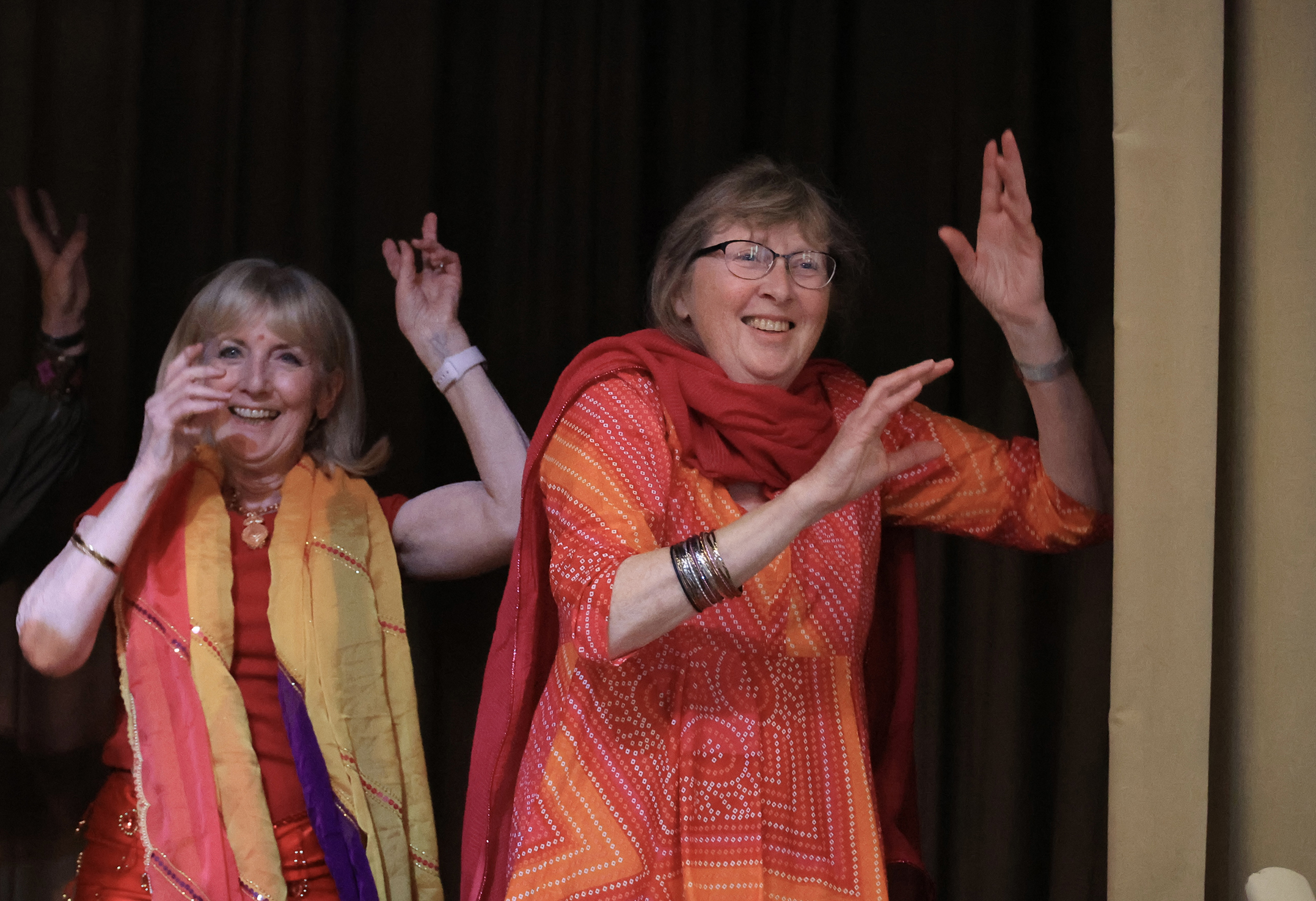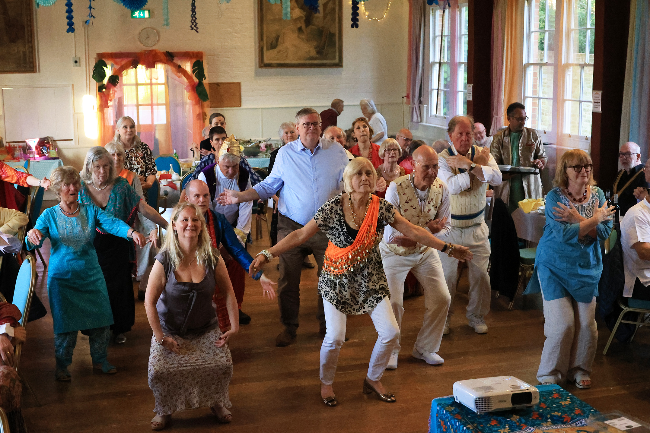 “With support from Jonathan, Jane compiled a selection of Bollywood film clips which played throughout the evening giving a glorious backdrop of images of Indian cultural sites, dance and the diverse community. Maddy choreographed and taught a joyful Bhangra routine, danced to Jai Ho! from Slumdog Millionaire. The majority of the audience rapturously took part and had more than one go leaving them exhausted!