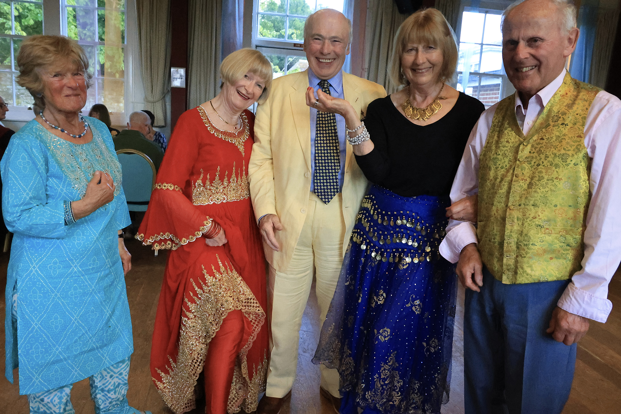 “Indeed everyone had made a wonderful effort to dress authentically in order to ‘impress the directors’. The sixty-six guests admired each other’s outfits, which complemented the New Hall decorated with colourful floaty organza drapes and blue hangings.