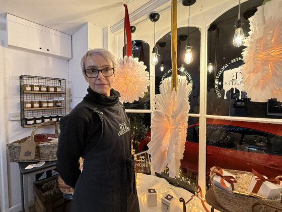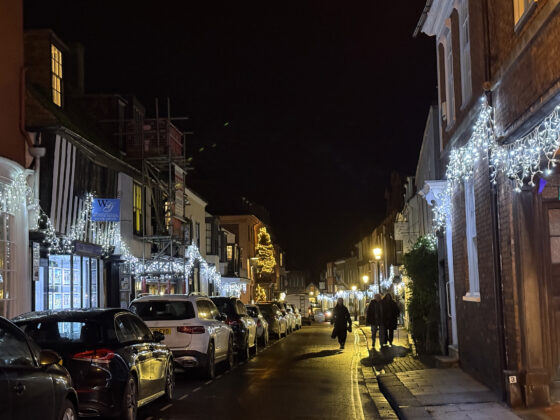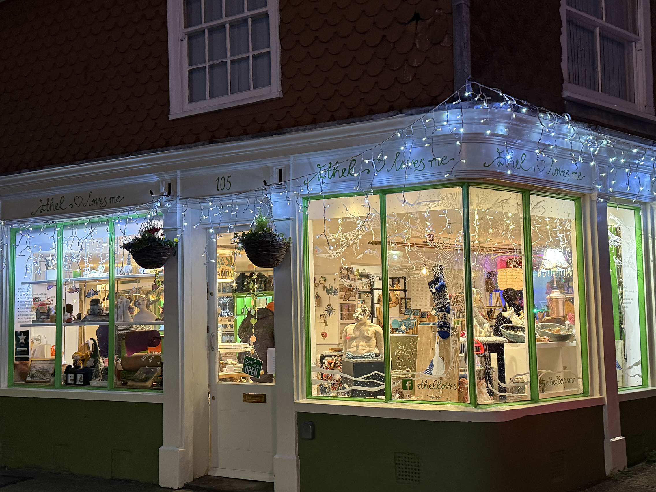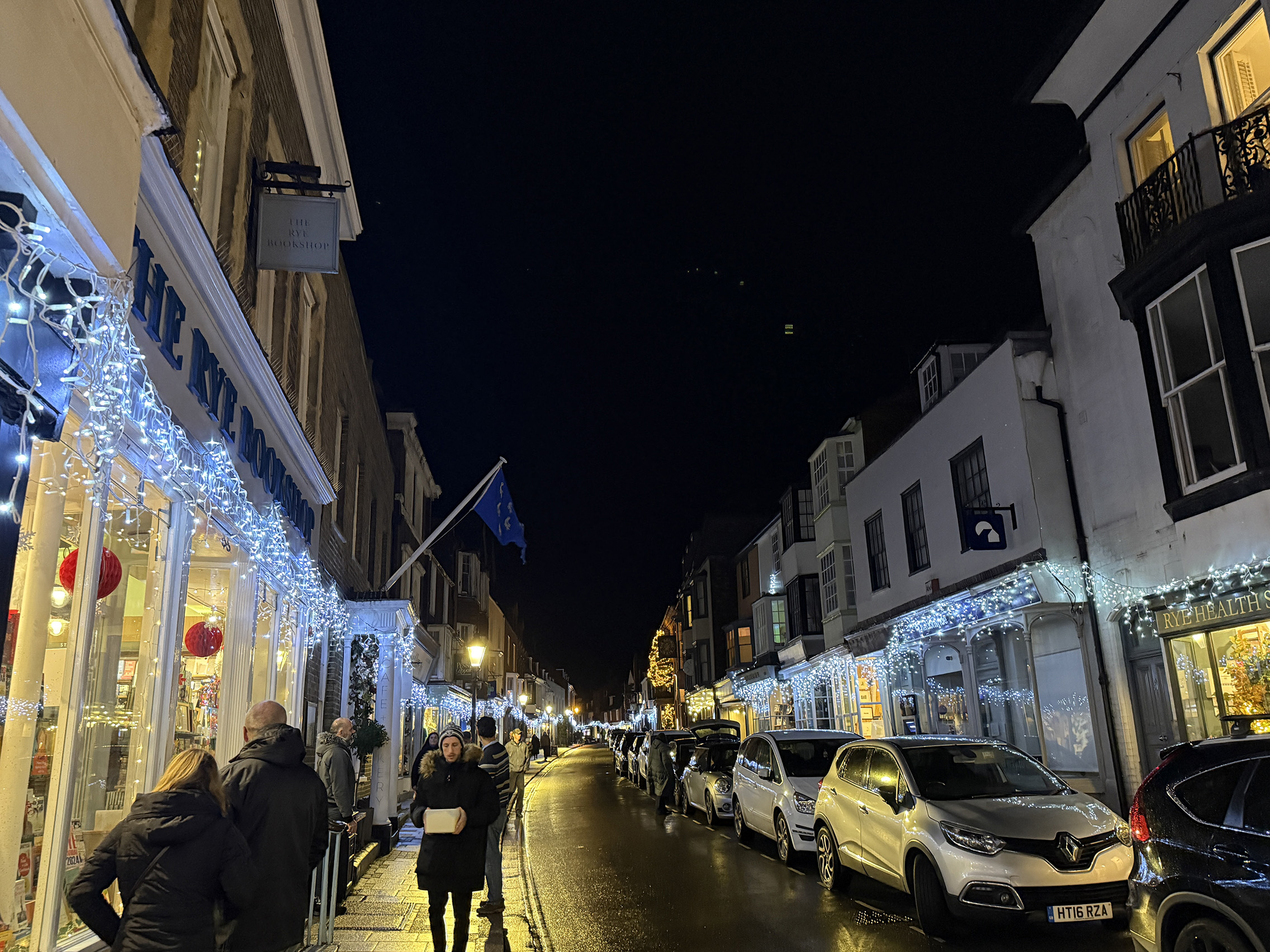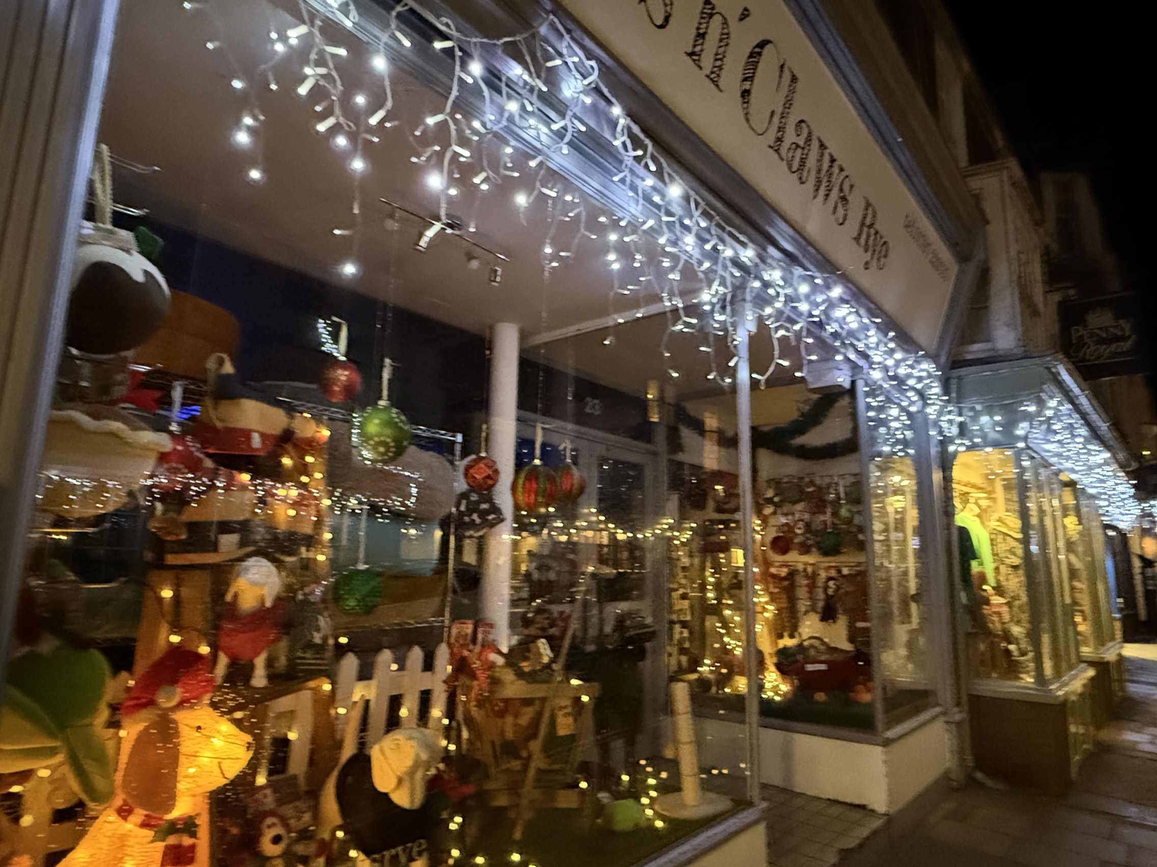 But the shopkeepers of Rye were determined not to let a storm with sixty-five mile-an-hour winds defeat them. The Late Night Shopping in Rye event did not go as planned on Saturday November 23, of course, for safety reasons; and the Marsh Choir and the switching on of the lights were cancelled, much to everyone’s sadness. However, there were lots of people shopping and there was a buzz about the town.