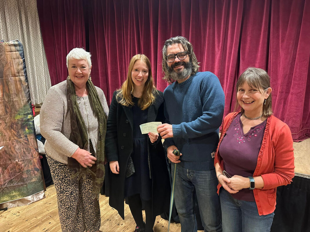 It so happened that the Rye Players treasurer, Sandi Bain, had come equipped with a cheque for £650 from the proceeds of Treasure Ryeland, to hand over to Stuart Clark for the RNLI Rye Harbour Lifeboat. On impulse, she asked Helena to do the honours and she was happy to oblige during the interval.