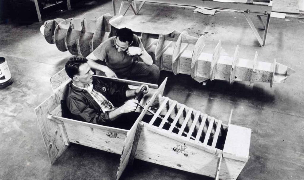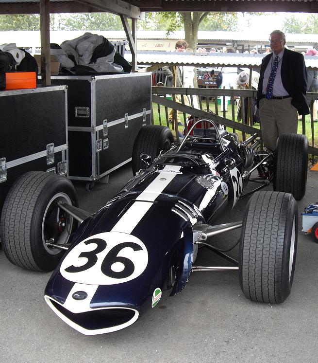 Dan Gurney in the mock up of the Eagle with its designer Len Terry